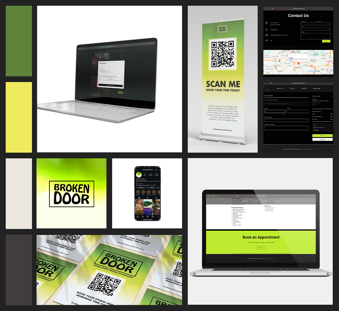 Broken Door came to us with a vision for a dynamic online platform to streamline its operations and elevate its brand. They needed a place where clients could effortlessly book sessions, schedule rehearsals, and manage payments; all in one seamless virtual experience. The Brand also sought a fresh logo, cohesive branding, and promotional materials to drive traffic and build awareness for their platform.